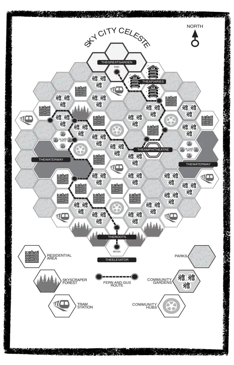 At the end of The Roots, I stop for a moment. Fern whirls around my head. ‘The Great Garden of Celeste is located in the North. Follow the central node straight ahead.’